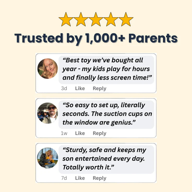 Easy, Tool-Free Setup: Suction cups and connectors let kids build and play anywhere—windows, floors, tiles, or doors.
